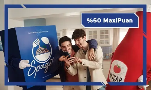 • Ek kart ve sanal kart ile kampanyadan yararlanılması durumunda MaxiPuan asıl karta yüklenecektir. Ek kart sahibi ve ek kartın bağlı olduğu asıl kart sahibi müşteriler kampanyadan ayrı ayrı faydalanamayacaktır.